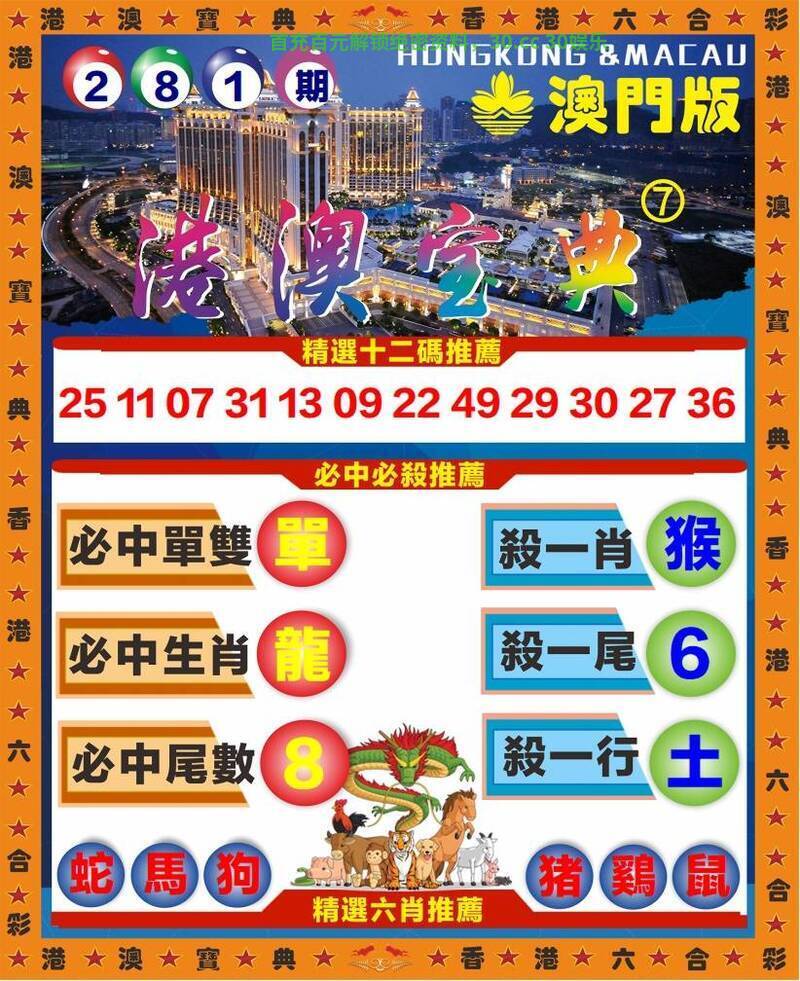 281期:🌺平特一尾🌺〖6666〗开:马36准